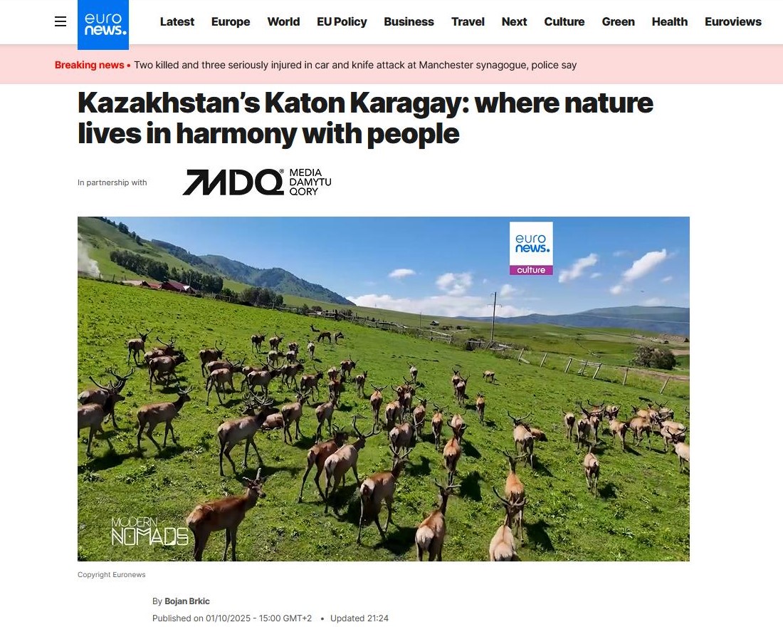На телеканале EuroNews вышел новый выпуск программы Modern Nomads, посвящённой туристическим жемчужинам Казахстана. В центре внимания сюжета оказался Катон-Карагай — уникальный регион Восточного Казахстана, известный своей живописной природой, богатой историей и культурным наследием.